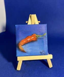 The Minis is a collection of original mini oil paintings, each created on a 7 x 7 cm stretched canvas.